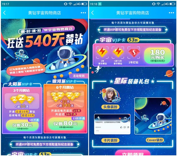 共计返还36个月! 还有个180元开通1年豪华黄钻+72天豪华黄钻+1年红钻!