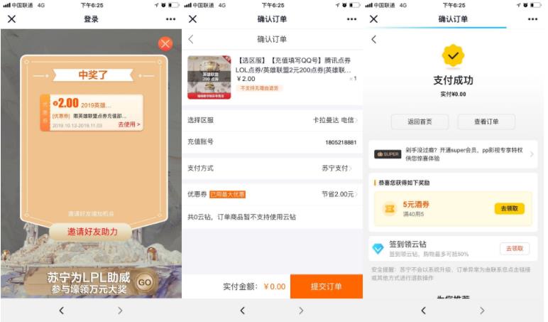 进入活动->玩游戏->结束抽->抽中点券->立即使用->用券后都是0元下单