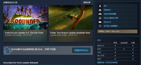 禁闭求生(Grounded)》是黑曜石娱乐开发的第一人称合作生存游戏,本作于今年7月29在Steam上开启了抢先体验,不过当时游戏并不支持中文,官方表示将在后续添加中文。现在开发商为本作更新了简体中文,国内玩家终于可以愉快的玩耍了。本作当前“特别好评”,近期好评率96%。售价99元。