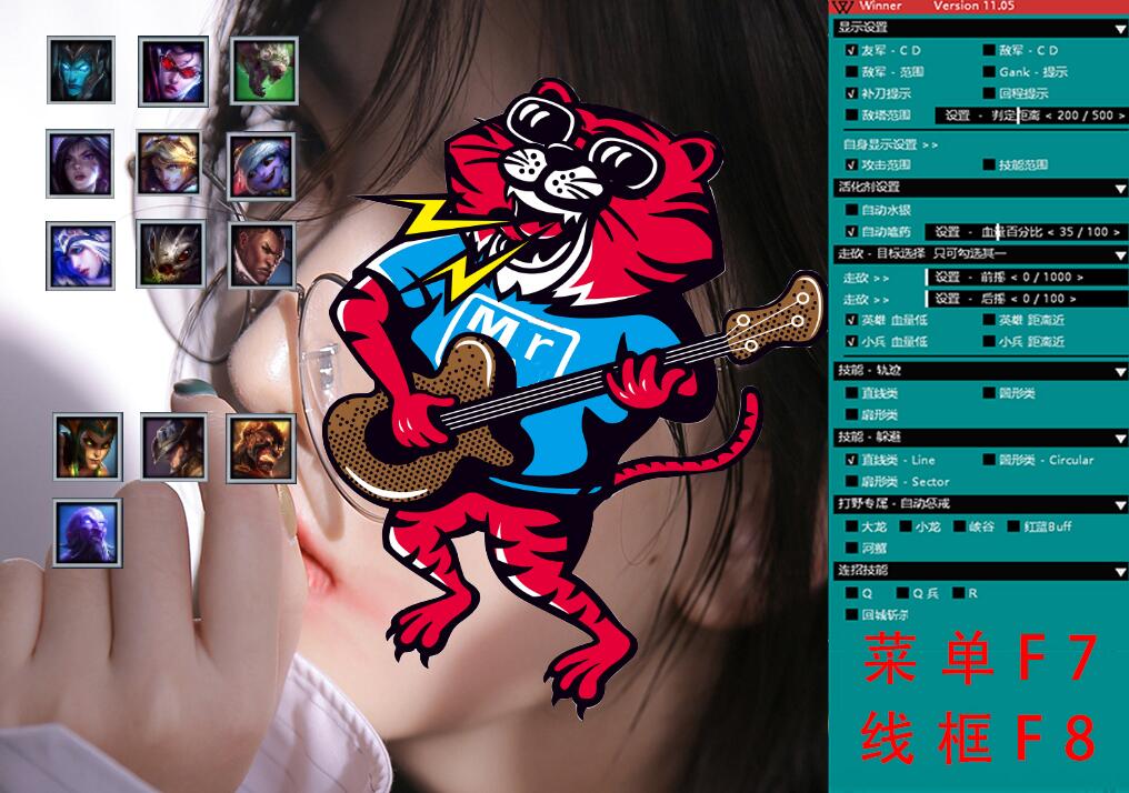 功能简介:显示敌我CD 防Gank提示 补刀提示 攻击范围 活化剂 走砍 技能绘制 自动惩戒 连招 线圈显示