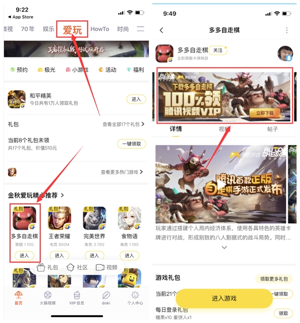 打开腾讯视频APP登录 上方菜单栏滚动找到“爱玩”