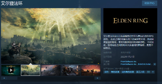 由FS制作,备受玩家期待的类魂游戏《艾尔登法环》Steam页面已于今日正式开放,Steam显示本作将于明年1月21日正式发售,具体售价暂未公布。此外,本作Steam页面显示支持繁简中文。