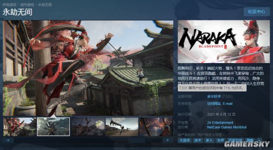 网易旗下的24娱乐开发的《永劫无间》近日在Steam平台正式发售,目前游戏评测为多半好评(7531),好评率71%。