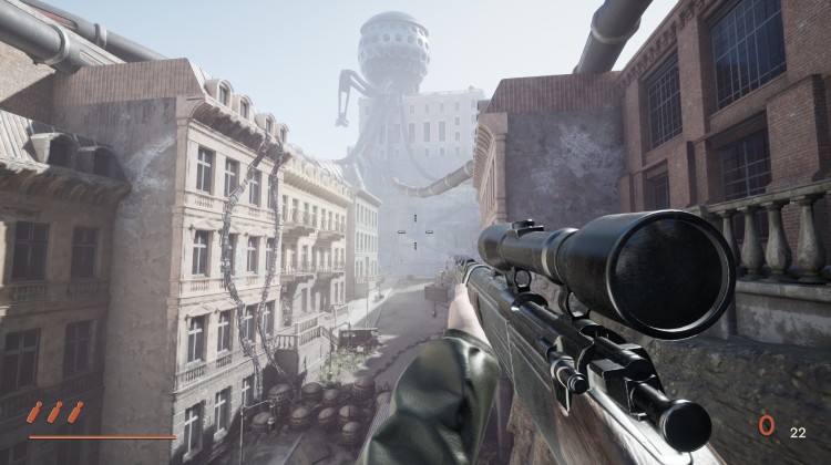 主角穿越到的虚构城市,和《半衰期2》的17号城有着很高的相似度,玩过《半衰期2》的朋友应该会立刻感受到。高耸的机械城墙、随处可见的管道等等,视觉上已经和17号城市类似。