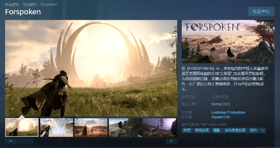 今日(11月12日),SE夜光组动作RPG新作《FORSPOKEN》现已上架Steam、Epic商店页面,根据页面显示,游戏预计将于2022年春季发售,游戏支持简体中文。