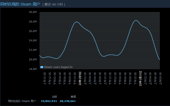 继开年之初(1月3日)Steam在线人数突破2700万大关之后,今日(1月10日)Steam官方更新了最新数据:昨晚Steam在线人数再创新高,正式突破2800万!