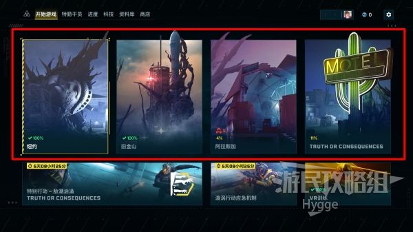 在开始游戏界面玩家可以从中央的四个区域开始游玩常规游戏模式,或者从下方进入特殊游戏模式和新手教学关卡。在玩家刚刚进入游戏时仅可以选择纽约区域进行游戏,后续的三个区域以及特殊模式需要通过提高里程碑等级解锁。文章源自-樱花卡盟https://www.yinghuakm.cn/樱花卡盟,绝地求生卡盟,dnf卡盟,辅助卡盟,lol辅助,cf辅助,辅助发卡平台-https://www.yinghuakm.cn/5620/.html