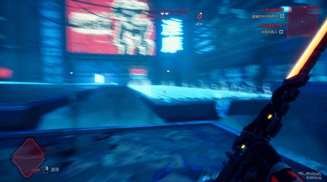 与游戏本体一样,DLC的关卡和敌人设置使得玩家仍然要优先击杀那些威胁较大的目标和护盾发生器再去跟普通的杂兵周旋,只是相比于本体的主角,能二段跳的赫尔机动性更强,在走位上更加游刃有余。不过在面对一些特殊的敌人,比如狙击手或者炮台时,身法再灵活,直接跳脸都是死路一条,还得规规矩矩地先利用掩体或者射击死角接近敌人才能将其击杀。