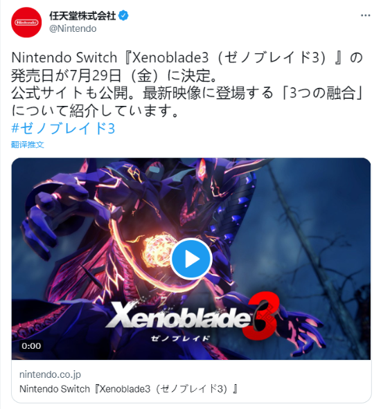 今日,任天堂官方宣布,《异度之刃3》将于7月29日发售,并放出一段全新预告。
